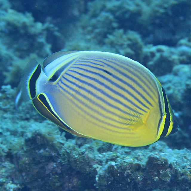 ミスジチョウチョウウオ (チョウチョウウオ科) Chaetodon lunulatus Quoy et Gaimard, 1825 [Chaetodontidae]