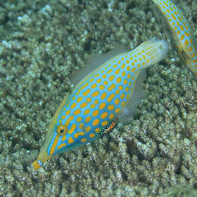 テングカワハギ (カワハギ科) Oxymonacanthus longirostris (Bloch et Schneider, 1801) [Monacanthidae]