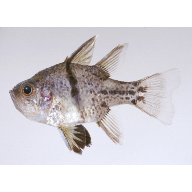 ホソスジマンジュウイシモチ (テンジクダイ科) Sphaeramia orbicularis (Kuhl et Hasselt, 1828) [Apogonidae]