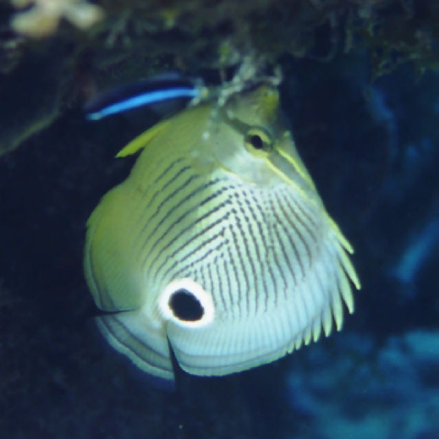 フォーアイ・バタフライフィッシュ (チョウチョウウオ科) Chaetodon capistratus Linnaeus, 1758 [Chaetodontidae]