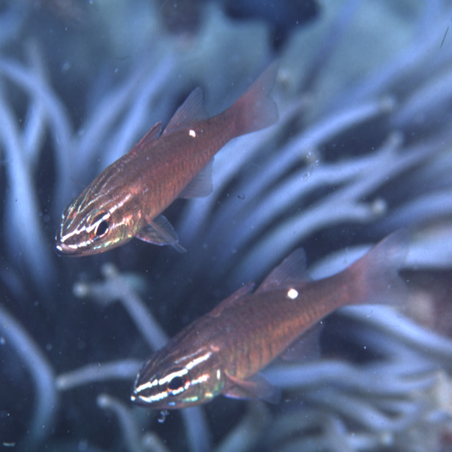 セホシテンジクダイ (テンジクダイ科) Ostorhinchus moluccensis (Valenciennes, 1832) [Apogonidae]