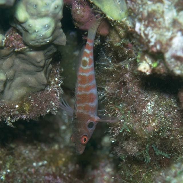 ƒtƒ^ƒzƒVƒSƒ“ƒx (ƒSƒ“ƒx‰È) Amblycirrhitus bimacula Jenkins, 1903 [Cirrhitidae]