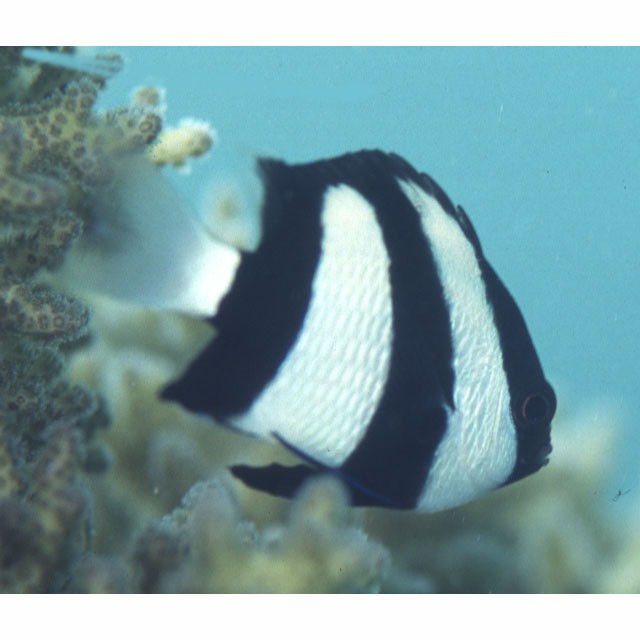 ミスジリュウキュウスズメダイ (スズメダイ科) Dascyllus aruanus (Linnaeus, 1758) [Pomacentridae]