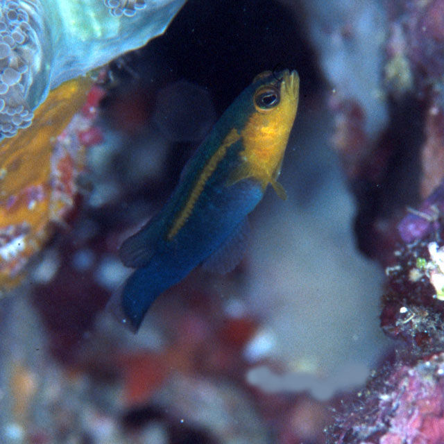 ƒŠƒ…ƒEƒLƒ…ƒEƒjƒZƒXƒYƒ (ƒƒMƒX‰È) Pseudochromis cyanotaenia Bleeker, 1857 [Pseudochromidae]