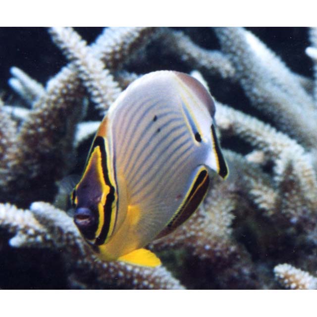 ミスジチョウチョウウオ (チョウチョウウオ科) Chaetodon lunulatus Quoy et Gaimard, 1825 [Chaetodontidae]