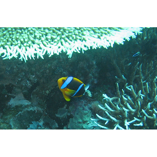 オレンジフィン・アネモネフィッシュ (スズメダイ科) Amphiprion chrysopterus Cuvier, 1830 [Pomacentridae]