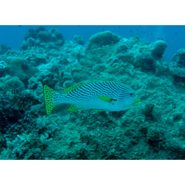 アヤコショウダイ (イサキ科) Plectorhinchus lineatus (Linnaeus, 1758) [Haemulidae]