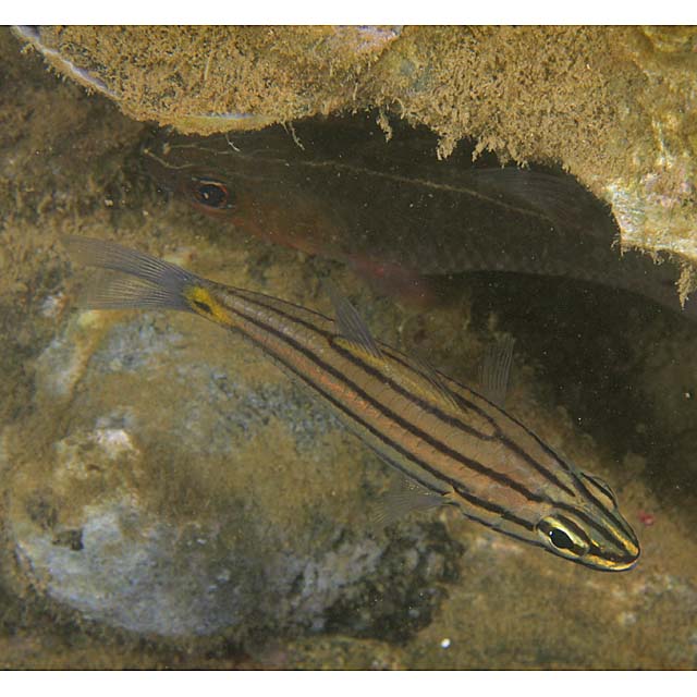 ヤライイシモチ (テンジクダイ科) Cheilodipterus quinquelineatus Cuvier, 1828 [Apogonidae]
