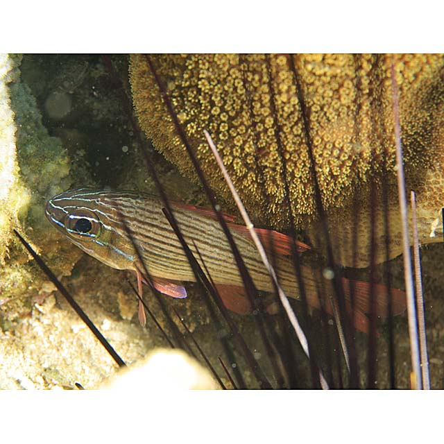 マルチストライプト・カージナル (テンジクダイ科) Apogon multilineatus Bleeker, 1863 [Apogonidae]