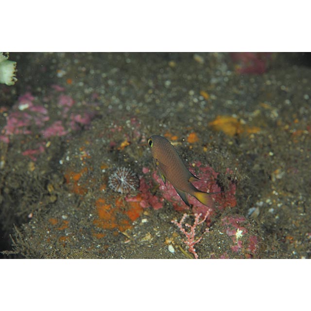 ヒレグロスズメダイ (スズメダイ科) Chromis atripes Fowler et Bean, 1928 [Pomacentridae]