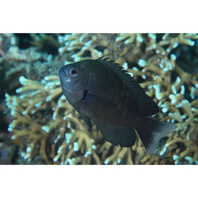 チャーコール・ダムゼル (スズメダイ科) Pomacentrus brachialis Cuvier, 1830 [Pomacentridae]