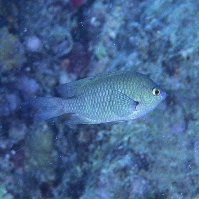 ブルーグリーン・ダムゼルフィッシュ (スズメダイ科) Pomacentrus callainus Randall, 2002 [Pomacentridae]