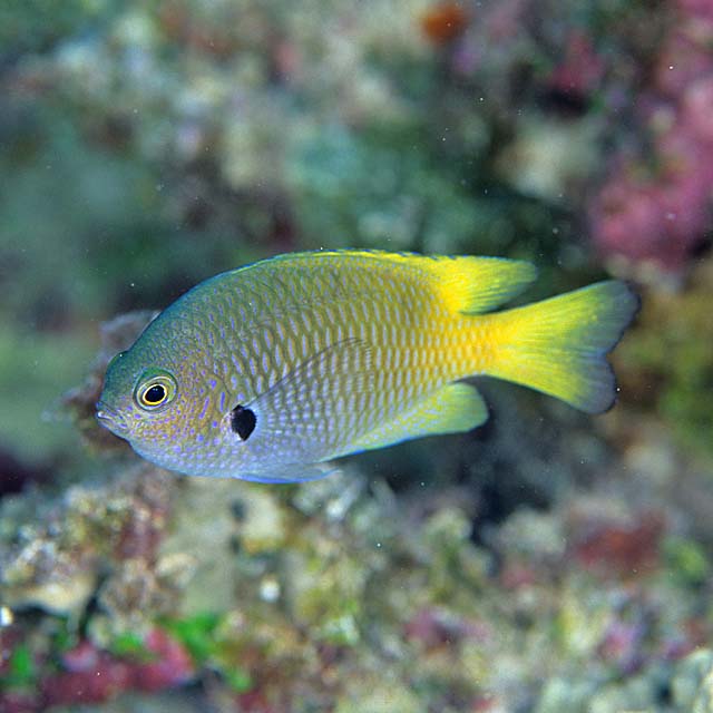 ニセモンツキスズメダイ (スズメダイ科) Pomacentrus nigromarginatus Allen, 1973 [Pomacentridae]