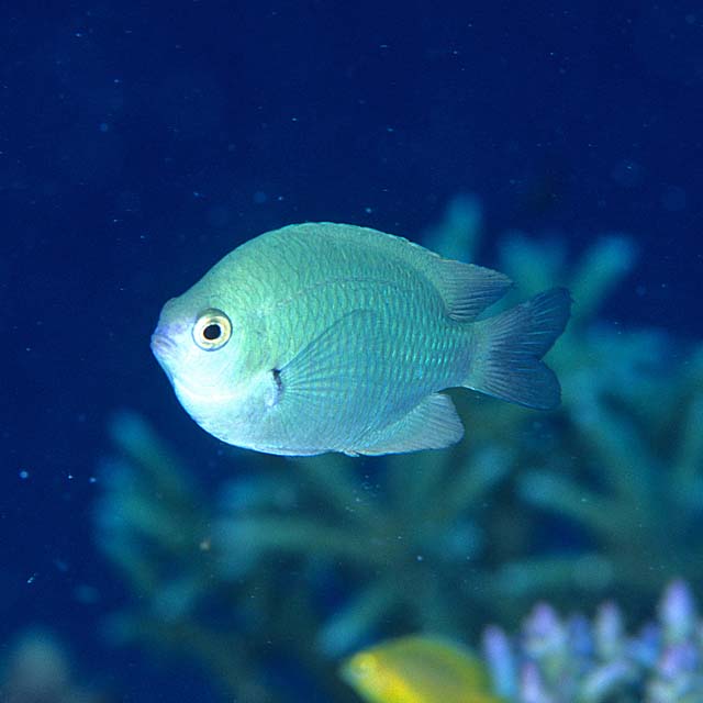ブルーグリーン・ダムゼルフィッシュ (スズメダイ科) Pomacentrus callainus Randall, 2002 [Pomacentridae]