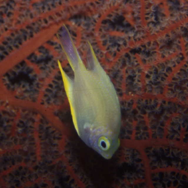 ヤマブキスズメダイ (スズメダイ科) Amblyglyphidodon aureus (Cuvier, 1830) [Pomacentridae]