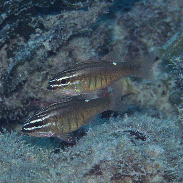 セホシテンジクダイ (テンジクダイ科) Ostorhinchus moluccensis (Valenciennes, 1832) [Apogonidae]